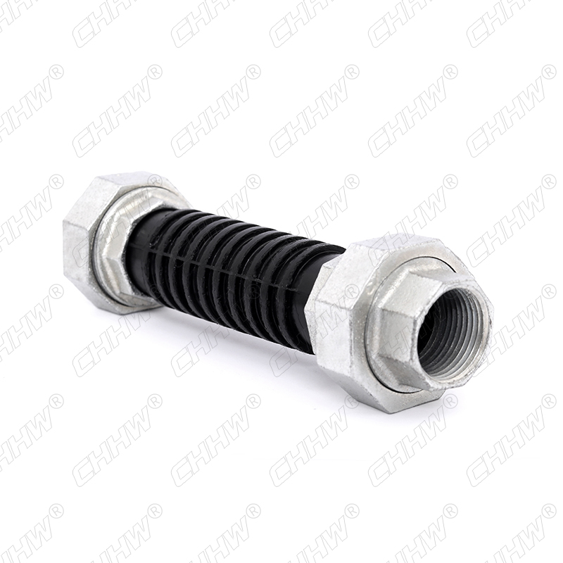 DN20-DN80絲扣連接橡膠軟接頭又稱螺紋可曲撓橡膠接頭,螺紋連接橡膠避震喉等,是一種高彈性、高氣密性,耐介質(zhì)性和耐氣候性的管道接頭。絲扣橡膠軟接頭利用了橡膠的彈性、高氣密性、耐介質(zhì)性、耐候性和耐輻射性等有點,采用高強度、冷熱穩(wěn)定性強的聚酯簾子布斜交與之復(fù)合后,經(jīng)過高壓、高溫模具硫化而成。內(nèi)部致密度高、能承受較高壓力、彈性變形效果好。減少震動、降低噪音、伸縮性好,使用方便。如(上圖)所示;